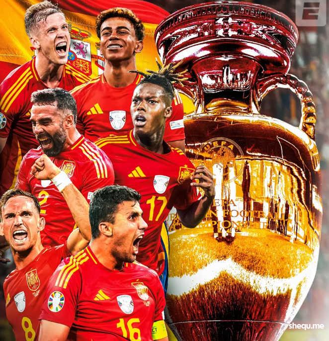 西班牙最锋利的矛能够刺穿英格兰最硬的命吗?本届欧洲杯的终极悬念在北京时间今天凌晨有了答案。尼科-威廉斯的进球让斗牛士看到问鼎的曙光,奇兵帕尔默差点就拯救了英格兰,但在这个巅峰对决的夜晚,命运之神决定眷顾踢得更加美丽的球队,奥亚萨瓦尔一锤定音,西班牙七战功成,时隔12年再度捧起欧洲杯,球队第四次夺得欧洲杯,成为欧洲杯夺冠次数最多的球队,历史第一!