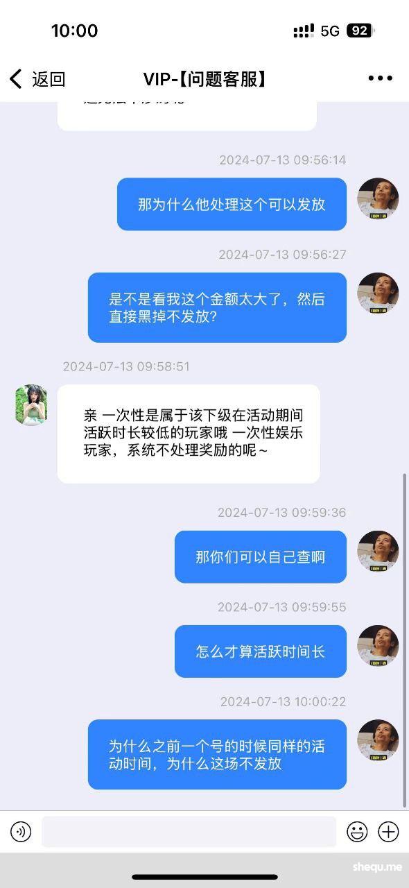 我在南宫邀请了15个有效新用户,大部分都是7号和8号9号邀请的,都有连续两天充值,并且达到了500以上,有效流水大部分都有2000以上有些5000,到现在结算的时候说我的是一次性用户,系统不给我发放礼金,全部给我黑了,一共22500元,我在6.10-6.20期间的17号也拉了一个人,他在18号充值和19号充值,总共流水1000,他的情况和我上面15个人的情况一模一样,但是他发放了礼金,到了另一个周期,我拉了15个人,现在却是以各种理由不给我发放礼金,大家看清南宫,不要去南宫拉人了,你拉人拉的多不会给你礼金发放的