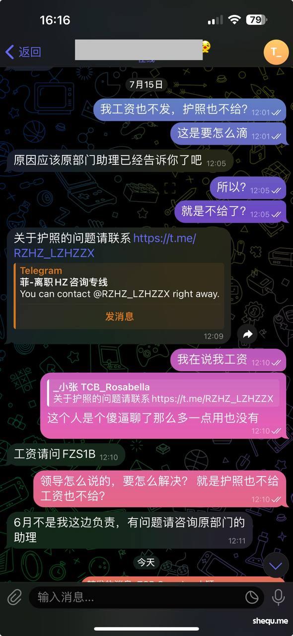 本人是此集团前Aseana 3 商务部门KM包网员工,欧洲杯之前公司出规定最后在职日期必须为7月15日之后,刚开始也是想遵守公司规定,提出干完欧洲杯结束再离职,然后主管经理即便是干完欧洲杯再走也不批你OA,强制给你转岗到铂金做招商,后续7月1日当天和新部门沟通实在不想做,当天辞退回去。 现在离职已经在外面等了18天,护照不给,咨询那个狗专线就说在走流程,降签,让我等30-45个工作日。 试问同行里还有哪家公司离职需要在外面等这么久的? 我问旅行社都说降签半个月之内就好。 多方找人沟通无果,迫于无奈只能曝光了,然后这个公司以此为由直接拒发工资,现在是护照不给,工资也被黑。 0赔自带9G来给你干了大半年,离职你搞得我护照也没工资也没,现在回国回不了,去别处上班也没护照。行,光脚不怕穿鞋的,现在结果再坏也无所谓了。老子不报警找NBI上A3当面和你要算我来菲律宾白混这么多年,你觉得你名声已经够臭无所谓,死猪不怕开水烫那就来。