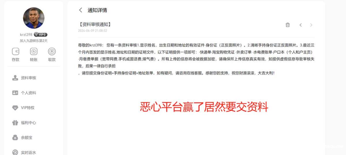【九游体育】作为杀猪盘这是无可阻挡、无可违逆的,玩家只能输不能赢,只要赢了就是交资料,黑款禁用,输钱什么措施也没有,这完全就是杀猪盘,这边强烈建议推出行业去缅北更有发展前途。请各位玩家代理远离杀猪盘,避免损失!