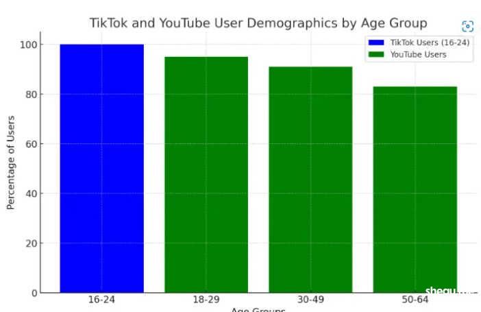 再从受众人群上看,Tiktok拥有大量青少年和年轻人,用户年龄在16至24岁,视频内容以娱乐为主,局限性较大,并不适合每一个品牌,而YouTube迎合了更广泛的人口。95%的18至29岁美国人使用YouTube,91%的30至49岁美国人和83%的50至64岁美国人也在使用它。